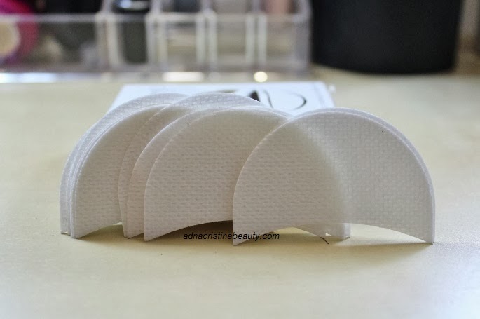 Evite sombras de caírem nos olhos com esta arma secreta, um produto descartável que não usa as mãos e economiza no tempo de aplicação. Feito de material que é próprio para a pele e tem o formato de meia lua. Aplique o produto antes de começar a maquiagem dos olhos para segurar todo o produto que cai e quando terminar os olhos e só puxar com cuidado.